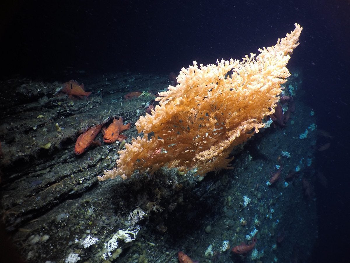 In 2018, Oceana Canada partnered with Fisheries and Oceans Canada, the Haida Nation, and Ocean Networks Canada to explore Northeast Pacific Seamounts located off the west coast of Vancouver Island. This deep-sea exploration revealed centuries-old forests of red tree corals and glass sponges that provide habitat for numerous animals, including sea lilies, basket stars, octopuses, prowfish, and many long-lived rockfish. Above the seamounts, the upwelling of deep nutrient-rich water fuels the growth in planktonic life that attracts larger species such as tunas, sharks, and whales. This expedition and campaigning by Oceana, its allies, and years of hard work by Indigenous Peoples, was key to securing a new marine protected area (MPA) for these seamounts. The MPA measures over 133,000 square kilometers – four times the size of Vancouver Island. It is the largest MPA in Canada and is co-managed by the government and several First Nations.