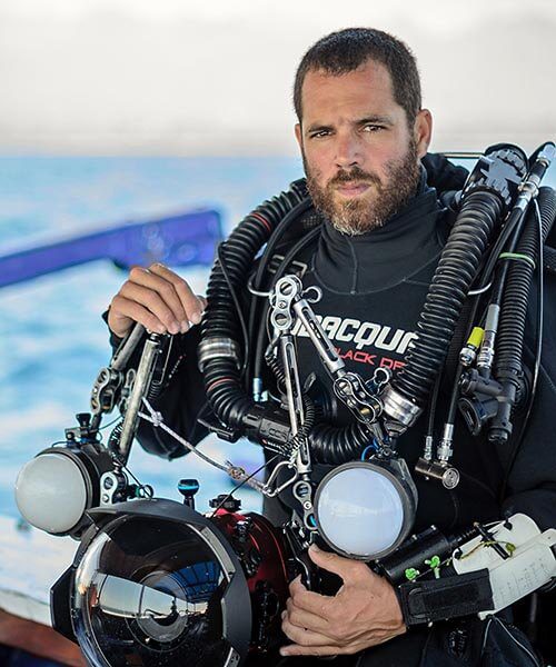 Álvaro Herrero, who goes by the name Mekan, is an acclaimed photographer originally from Spain. Herrero has been diving for over 18 years and has taught underwater photography masterclasses around the world. He and his work have been recognized by prestigious international photo contests such as GDT European Wildlife Photographer of the Year, Underwater Photographer of the Year, Ocean Photographer of the Year, Siena International Photo Awards, Asferico International Photo contest, and others. He is currently working in Mexico as a cave photographer.