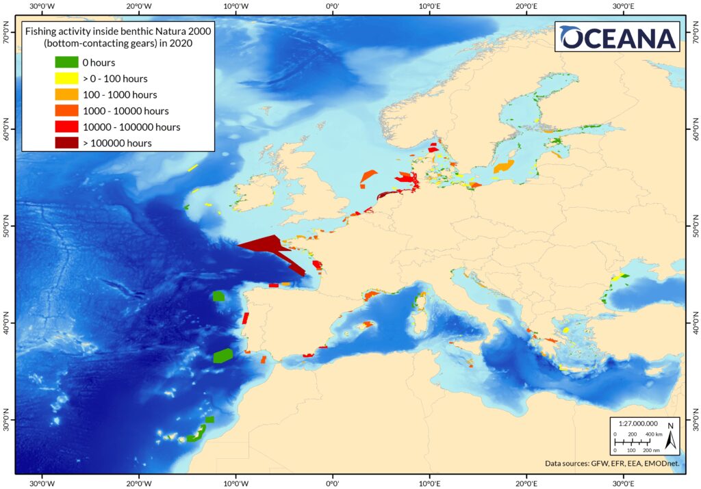 So why is the most destructive form of fishing allowed to occur in the most “protected” and productive parts of Europe’s ocean? Nicolas Fournier, Oceana’s Campaign Director for marine protection in Europe, explained that most of the MPAs in Europe do not include an outright ban on bottom trawling, or any activity for that matter.